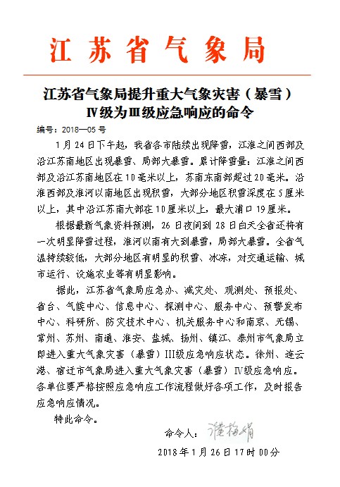 bet36官方网站提升重大气象灾害(暴雪)Ⅳ级为Ⅲ级应急响应的命令